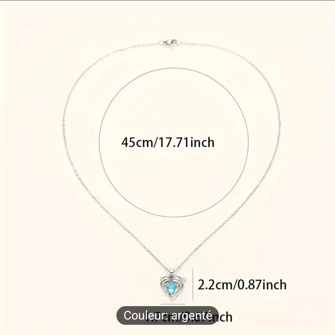 Laissez-vous sĂ©duire par la beautĂ© de ce collier dauphin ornĂ© dâun cĆur en zircon bleu scintillant.
