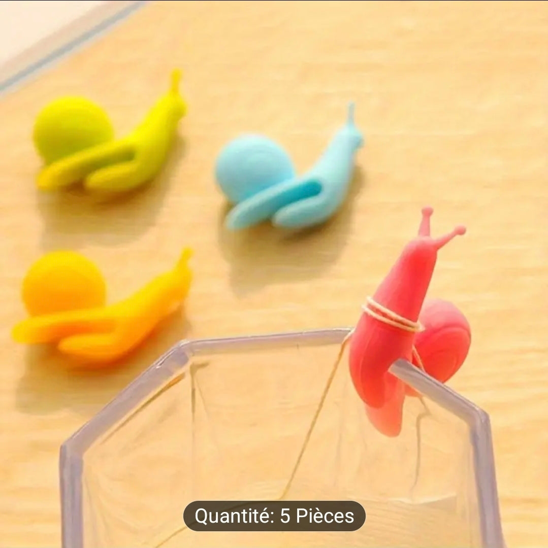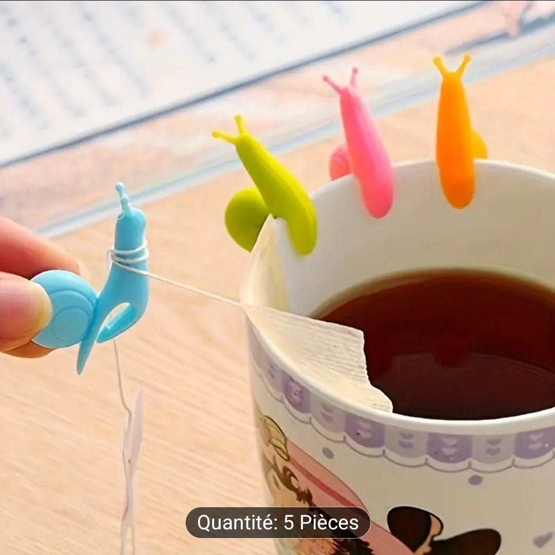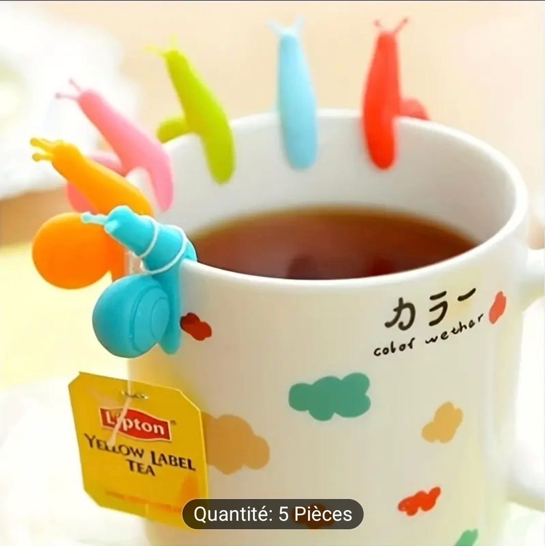 🐌🍵 Infuseurs & Porte-Sachets de Thé – Escargots en Silicone (Lot de 5) 🍵🐌